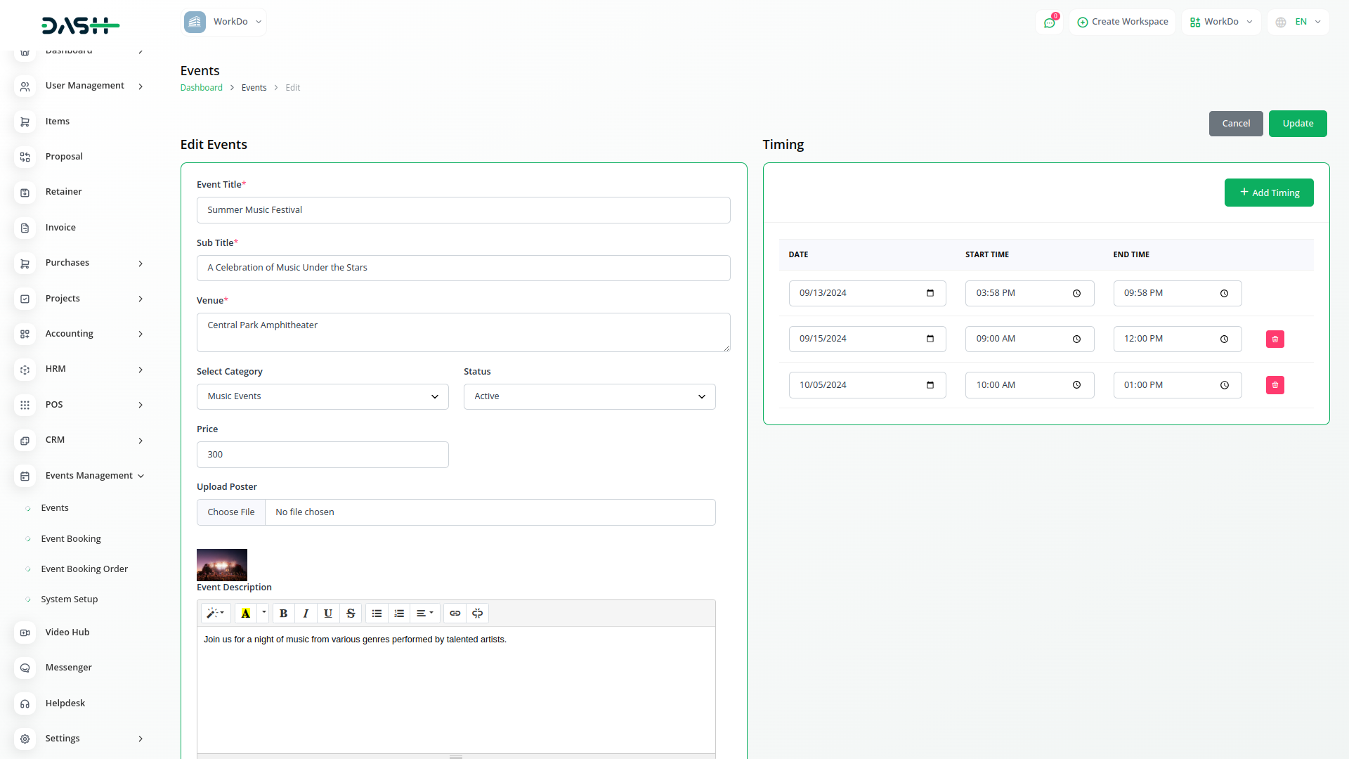 Experience seamless event management with WorkDo Dash powerful integration. From scheduling and coordinating to tracking tasks and communication, our platform streamlines every aspect of event planning.